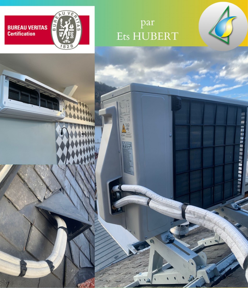 Nos équipes ont assuré : la pose de l’unité extérieure sur la chaise de toiture, en collaboration avec les charpentiers - la mise en place des liaisons frigorifiques - la récupération et l’évacuation des condensats - la mise en service complète de l’installation