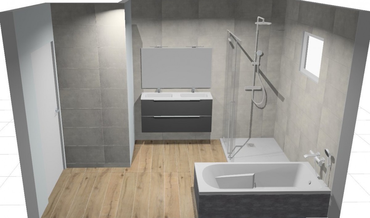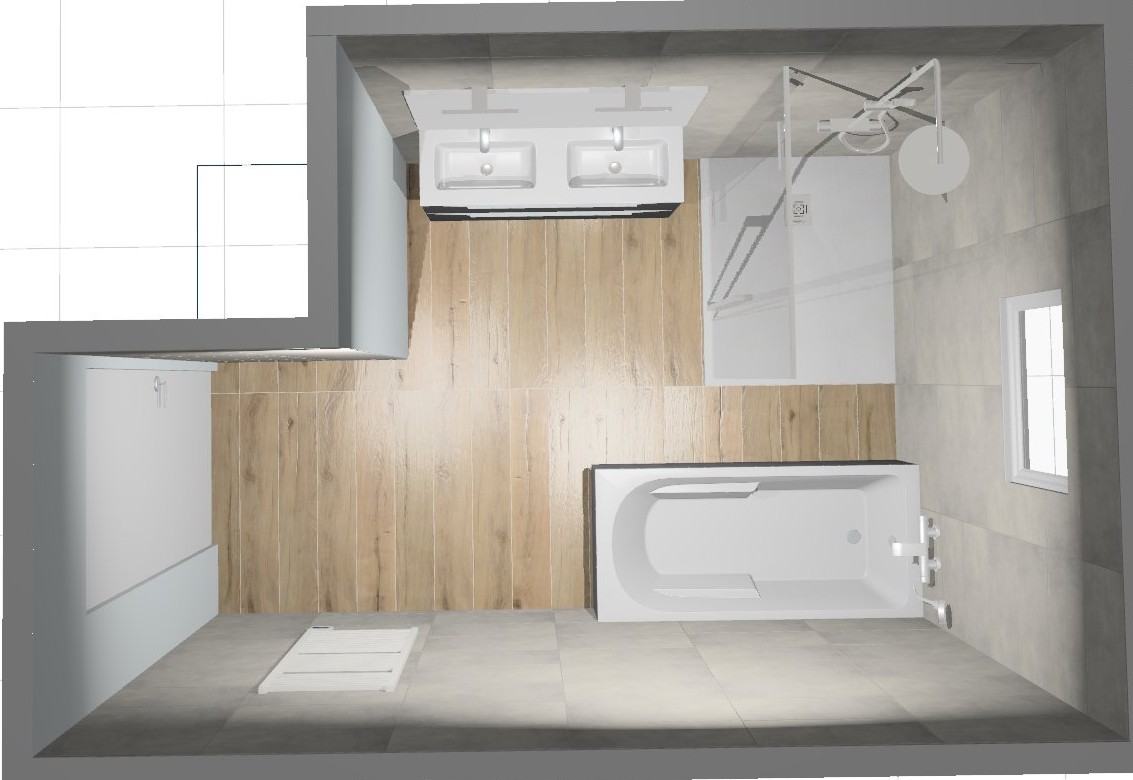Pour répondre au souhait de nos clients (conserver une baignoire pour les petits-enfants tout en gagnant en confort quotidien), nous avons repensé intégralement l'implantation :