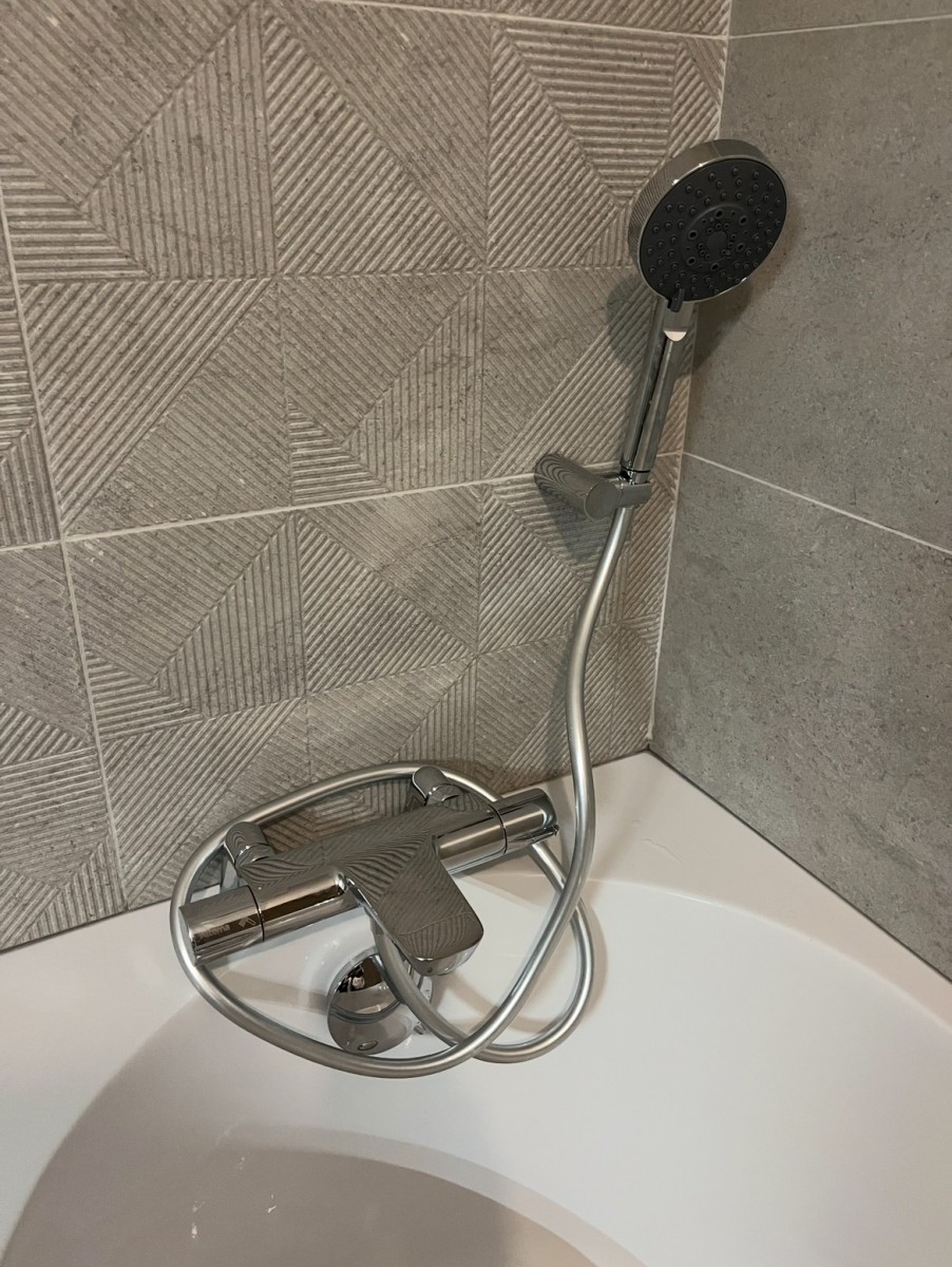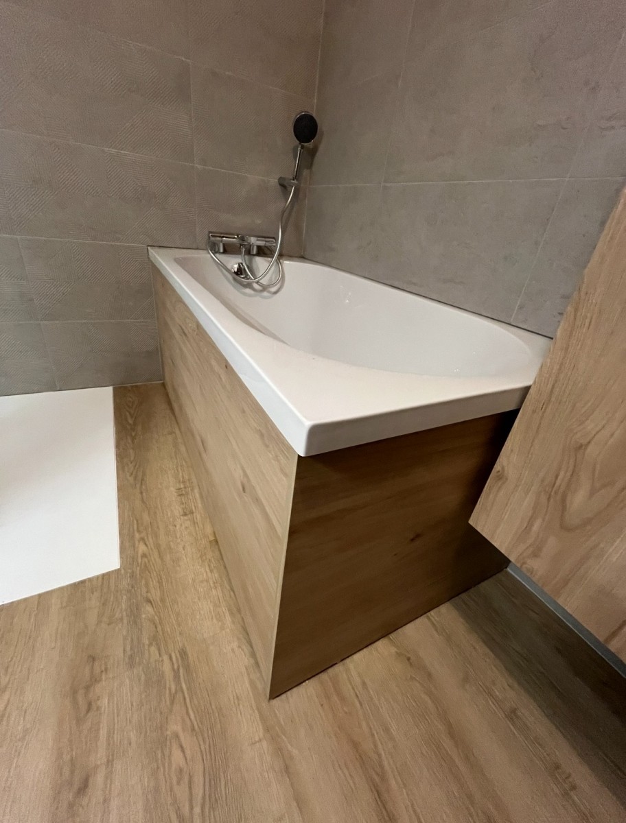 • Le duo Baignoire & Douche : Nous avons remplacé l'ancienne baignoire par un modèle plus compact, installé de façon inversée. Ce gain de place nous a permis d'intégrer une grande douche spacieuse, créant ainsi un espace "tonique" et polyvalent.