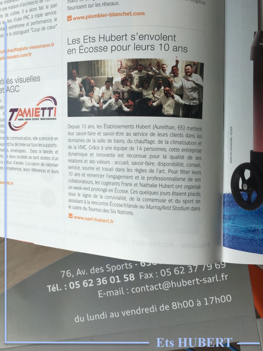 Les Ets HUBERT s'envolent en Ecosse pour leurs 10 ans